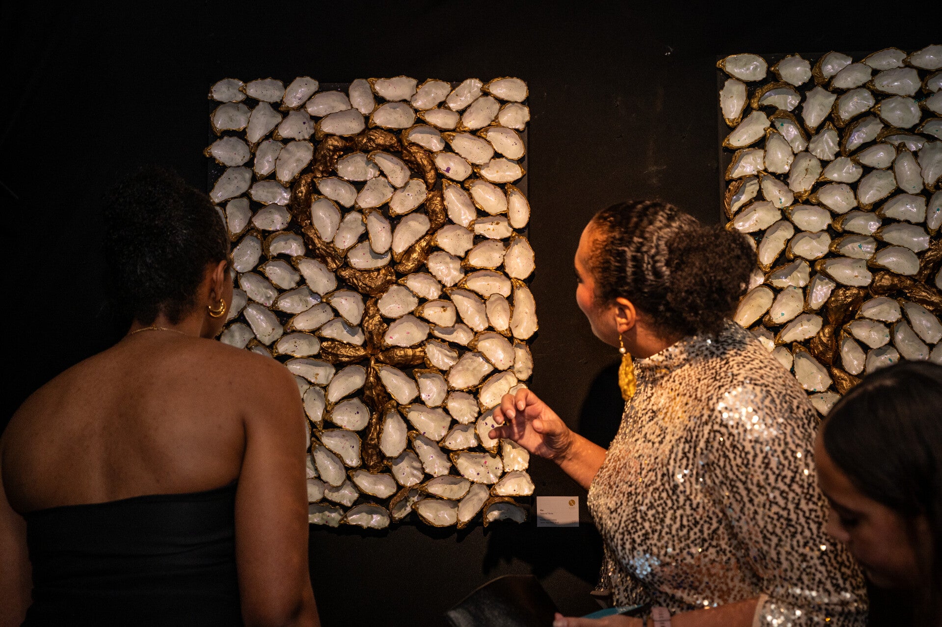 At the core of her work lies the oyster shell, a natural object that is both raw and refined. By transforming reclaimed shells into layered wall based artworks and sculptural pieces, Nathalie explores themes of femininity, strength, imperfection and contrast.